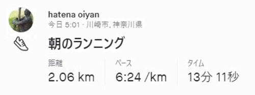 本日より7月。 道マラまで2カ月ですし サブ3に向けて頑張ります。 テレワークで少し時間があったので 30分ほど走れればと思い、レッツゴー! 実に3カ月ぶりのランです。 キロ6で5kmくらいでいいかと・・・ 無理でしたーwww 走り出しは脚が軽く …