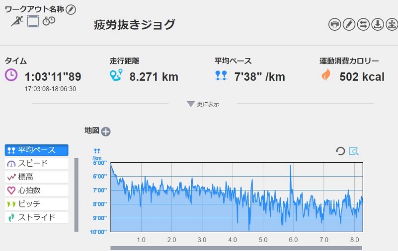 疲労抜きジョグの時はどんどんペースが落ちていく不思議。