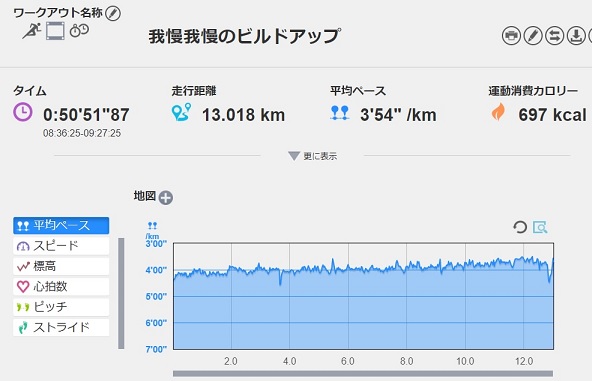 ペースも距離もやや抑え目。