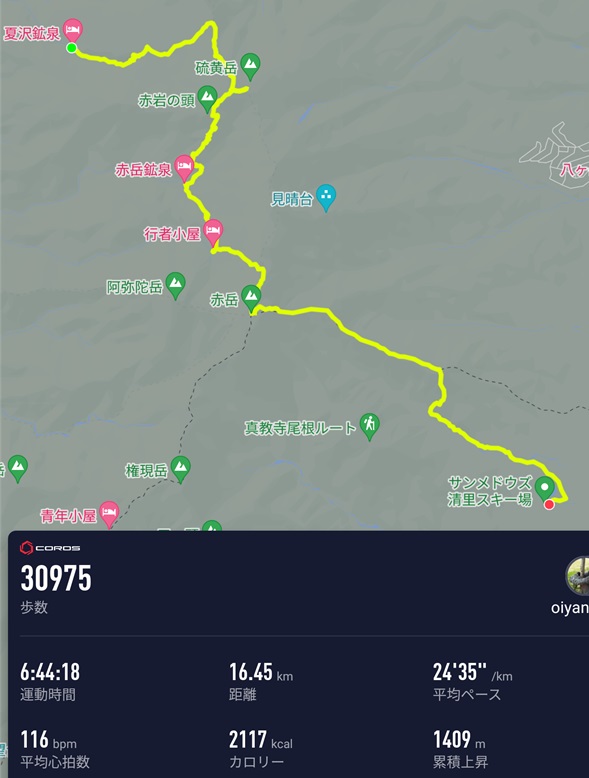 八ヶ岳8座全縦走の翌日。