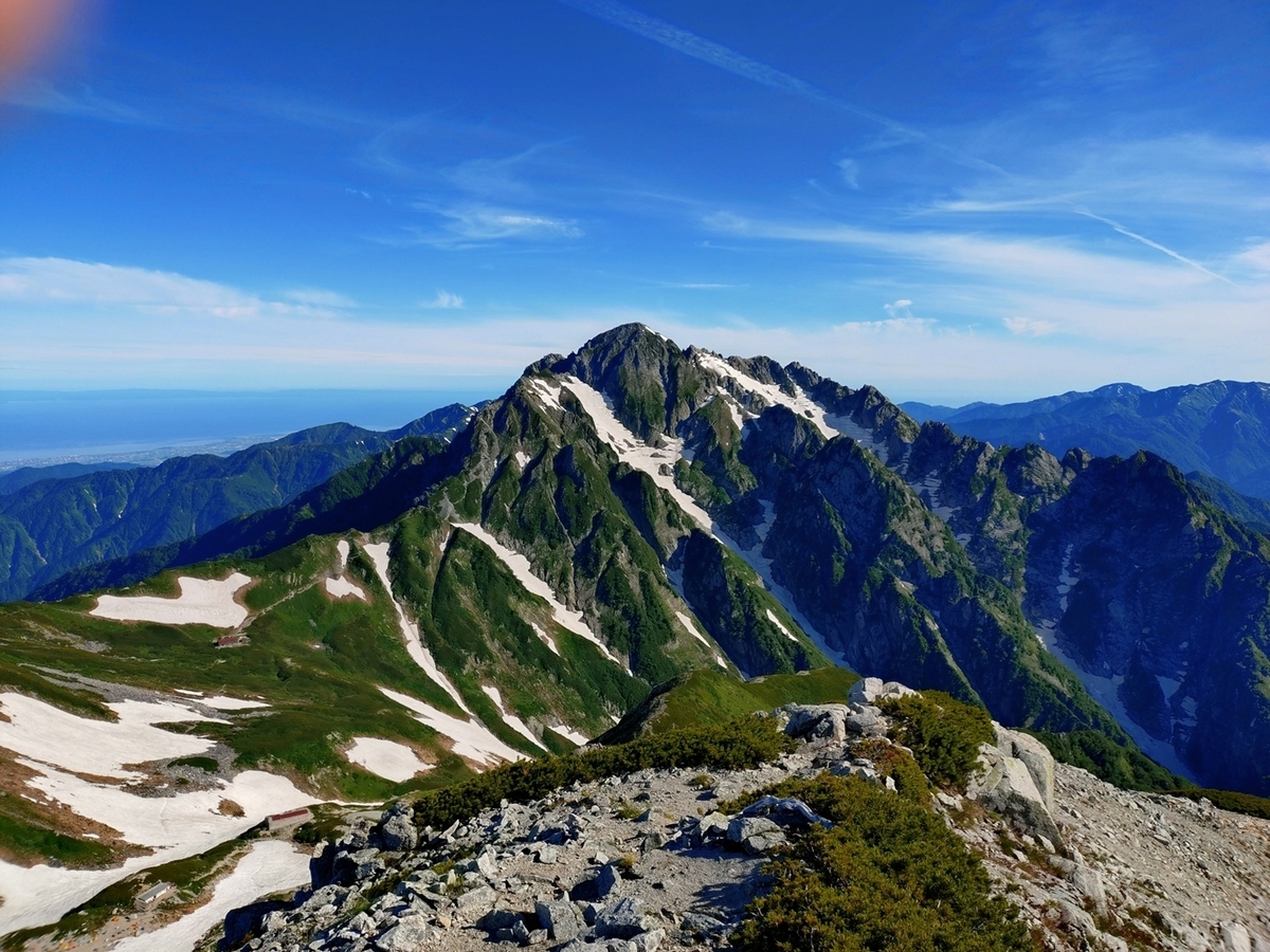 小屋前から剱を眺めながらボケーっとすごす