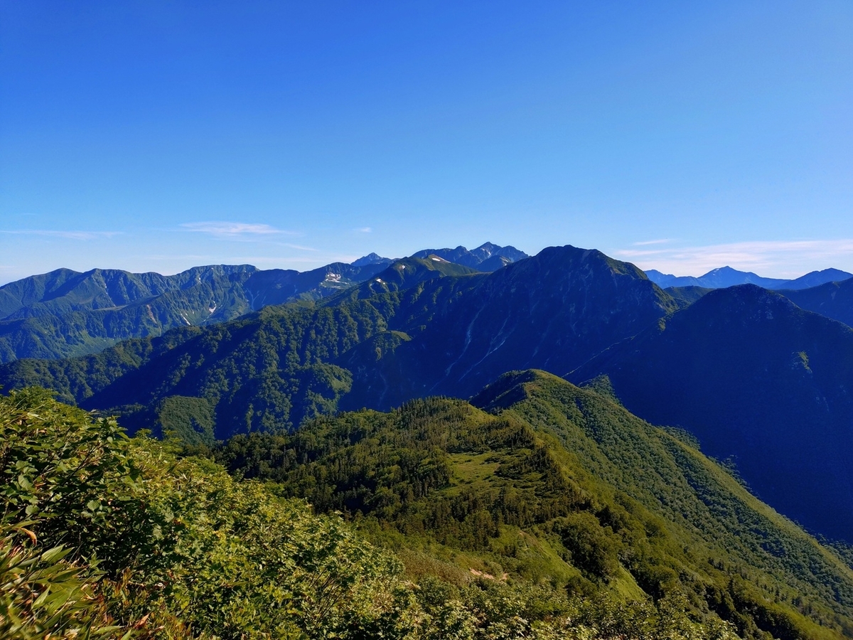 越中沢岳からスゴ乗越小屋までがこの山行の最難関箇所でした